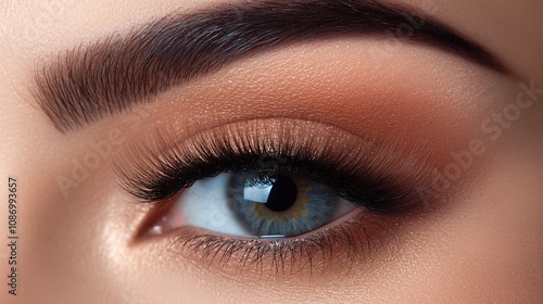 © WS Studio 1985, Fototapeta premium Close-up View of a Beautiful Eye Highlighting Flawless Skin Texture and Stunning Makeup with Detailed Eyelashes and Natural Eye Color