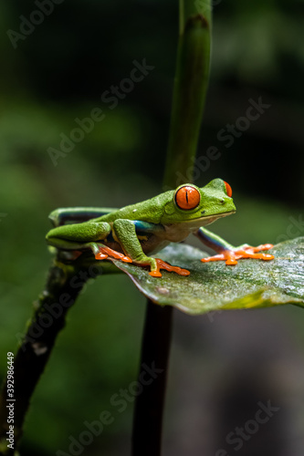 © Gian, Naklejka premium Close up view of a Beautiful red eye frog in the rain forest of Costa Rica