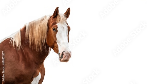 © Chase D’Animulls, Obraz premium close up view of a brown horse with mane hair showing. isolated on white background with copy space. cute adorable farm livestock mammal animal concept