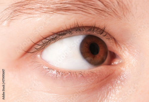 © triocean, Naklejka premium Close up view of a brown woman eye looking to the side