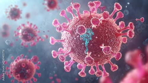 Fototapeta premium Close-up view of a computer-generated virus particle.