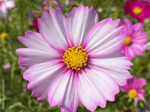 Fototapeta premium Close-up view of a cosmos flower head blooming in a meadow