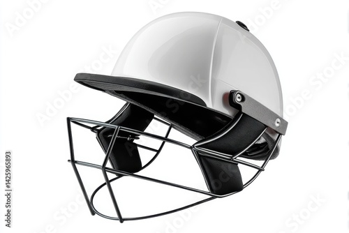 © Alive, Fototapeta premium Close-up view of a cricket helmet with protective grille against a clean white background showcasing intricate details