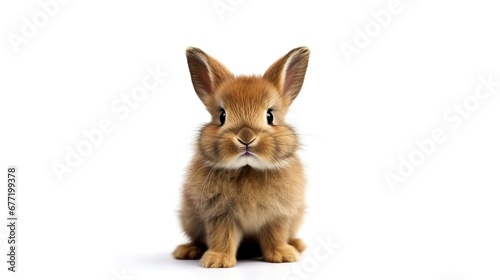 Fototapeta premium Close-up view of a cute brown Holland Lop rabbit on a white background