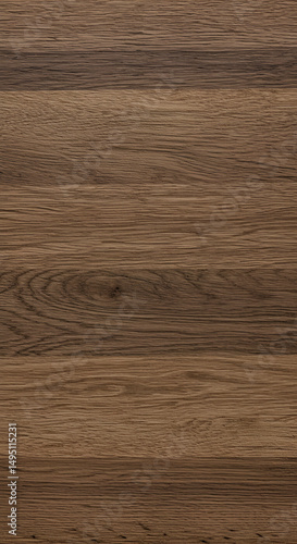 Naklejka premium Close-up view of a dark brown wood grain surface. Detailed wood texture with horizontal wood grain patterns. Interior design material sample for furniture or cabinetry.