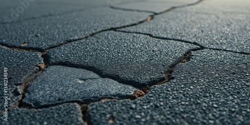 © sasiprapa, Obraz premium Close-up view of a dark, textured surface with cracks and water droplets