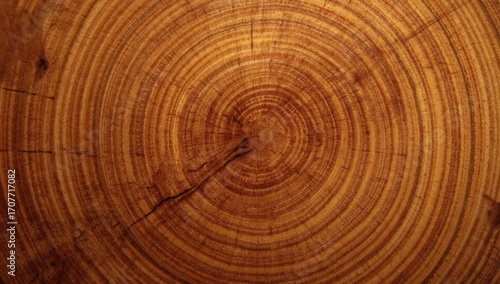 © derry, Fototapeta premium Close-up view of a detailed tree trunk cross-section, showcasing the intricate growth rings and natural wood grain patterns in warm, rich tones.