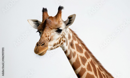 Obraz premium Close-up view of a giraffe's head and neck, showcasing its unique features