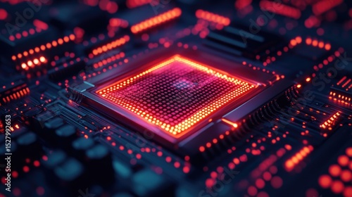 © rcf, Fototapeta premium Close-up view of a glowing computer circuit board.