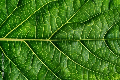 Obraz premium Close-up view of a green leaf showcasing intricate vein patterns and rich...