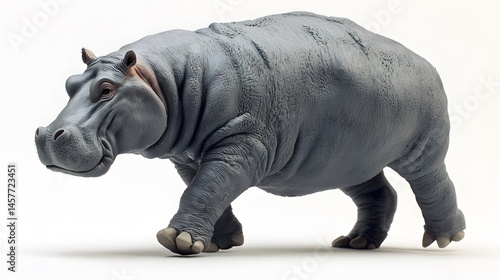 © Berkah, Obraz premium Close-up view of a hippopotamus in motion against a plain background.