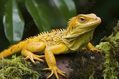 Obraz premium Close-Up View of a Lizard Perched on a Tree Branch. Generative AI