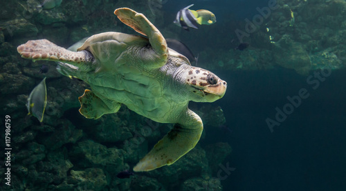 Obraz premium Close-up view of a Loggerhead sea turtle (Caretta caretta)
