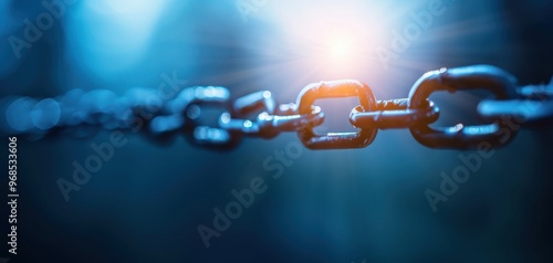 Obraz premium Close-up view of a metallic chain with a glowing background, symbolizing...