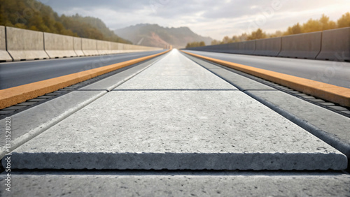 © 11, Fototapeta premium Close-Up View of a Modern Highway Pavement with Concrete Slabs and Road Markings