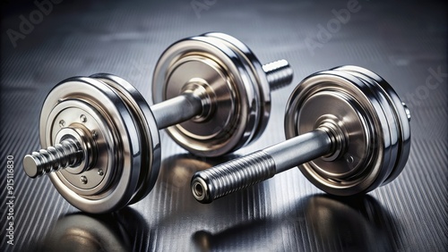 Naklejka premium Close up view of a pair of metallic dumbbells, fitness, workout, gym equipment