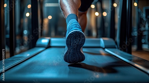 Fototapeta premium Close-up view of a person using a treadmill in a gym showing strength and focus while running towards fitness goals