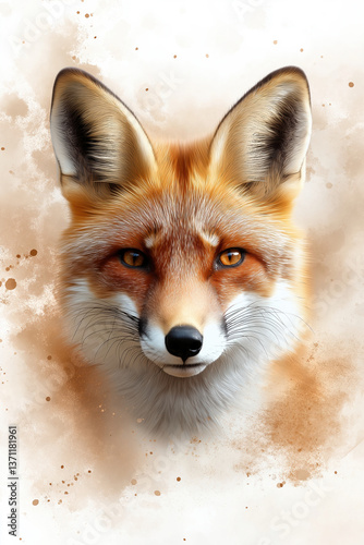 © Mselected, Obraz premium Close-up view of a red fox with striking features on a soft, blurred background