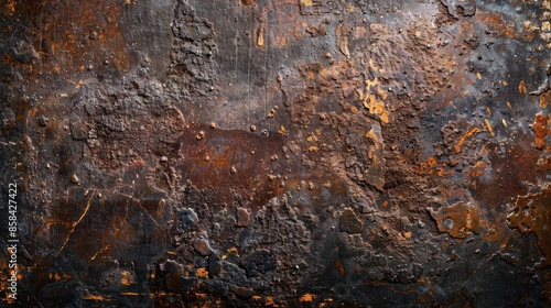 © BraveSpirit, Obraz premium Close-up view of a rusted metal surface with scratches