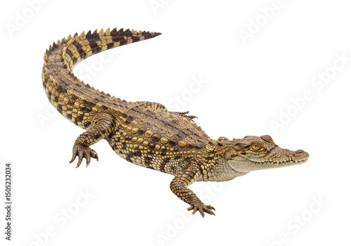 Naklejka premium Close-up view of a small crocodile in profile.