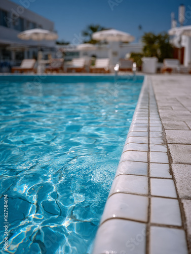 © SashaMagic, Obraz premium Close-up view of a swimming pool under a clear blue sky.