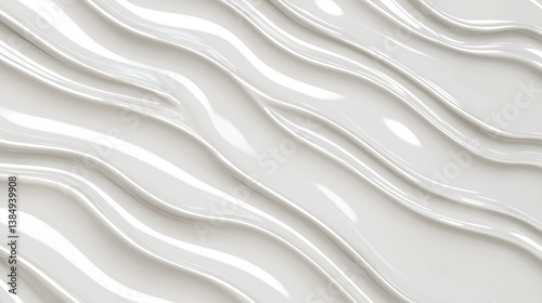 © Chalit, Obraz premium close-up view of a textured surface with a glossy, reflective finish. The surface features undulating, wave-like patterns that flow horizontally across the image.