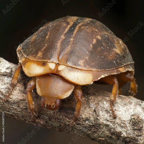 © Andrii, Obraz premium Close-up view of a unique beetle perched on a twig in the forest