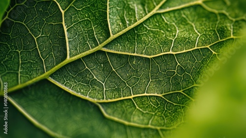 Obraz premium Close-up view of a vibrant green leaf's intricate vein structure.