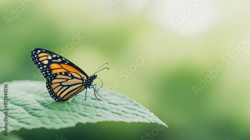Fototapeta premium Close up view of a vibrant monarch butterfly perched on a verdant leaf