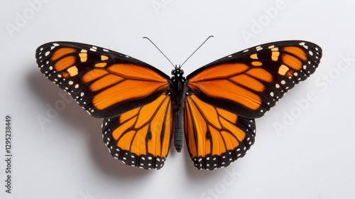 © khairulz, Fototapeta premium Close-up view of a vibrant Monarch butterfly showcasing its intricate wing patterns against a plain background