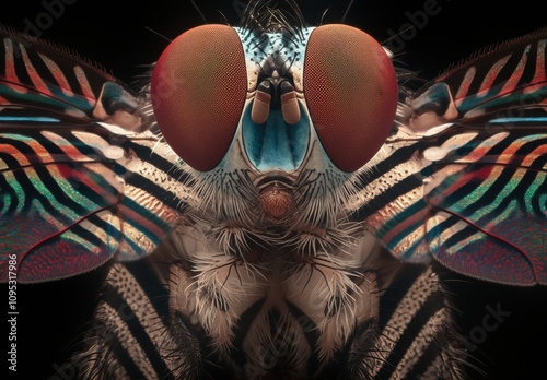 © Mardhiah, Naklejka premium Close-up View of a Vibrantly Colored Insect with Stunning Patterns and Details, Captured in a Studio Setting, Highlighting Its Unique Features and Colors