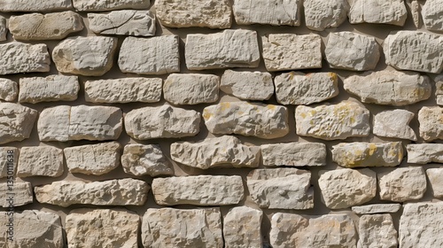 Fototapeta premium Close up view of a wall built with hand cut stones, creating a rustic and...