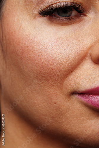 Fototapeta premium Close-up view of a woman's striking blue eyes with long lashes