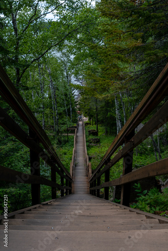 © Gunnar, Obraz premium Close-up view of a wooden boardwalk vanishing towards the horizon.