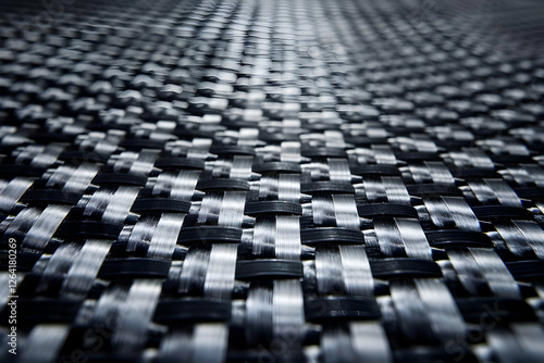 Fototapeta premium Close-up view of a woven black and silver textured surface, showcasing...