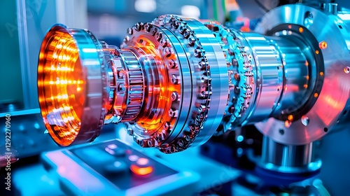 © Phichaphat, Obraz premium Close-Up-View-of-Advanced-Turbine-Engine-Component-with-Glowing-Lights-in-High-Tech-Laboratory-Environment