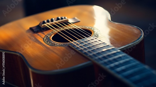 Fototapeta premium Close-up View of an Acoustic Guitar in Warm Light