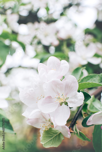 © greola84, Obraz premium Close up view of apple tree flowers blooming.