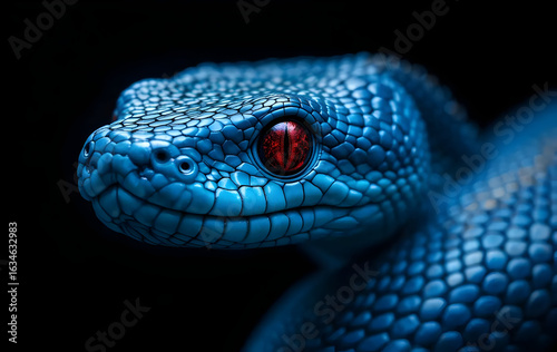 © Galih, Fototapeta premium Close Up View of Blue Snake with Orange Eyes and Tongu