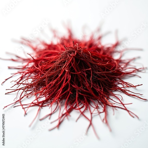 Naklejka premium Close-up view of bright red saffron threads. This luxurious spice is isolated...