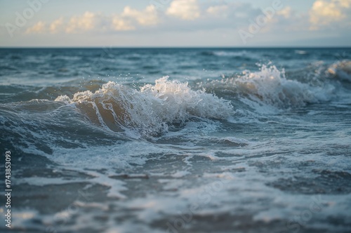 © TheWaterMeloonProjec, Fototapeta premium Close-up view of choppy sea waves on a breezy day