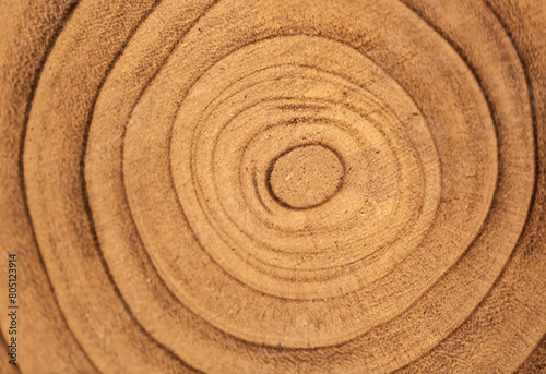 Naklejka premium Close up view of concentric circles etched into a wooden surface. The texture...