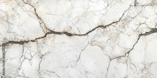 Fototapeta premium Close-up view of cracked white marble surface with natural veins and fractures creating an abstract textured pattern