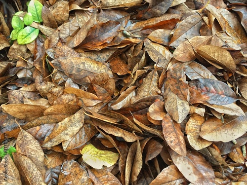 Fototapeta premium Close up view of damp fallen leaves on a rainy fall day