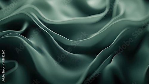 Obraz premium Close-up view of deep teal, draped, wavy fabric. Fluid, smooth, folds cascade. Textured surface