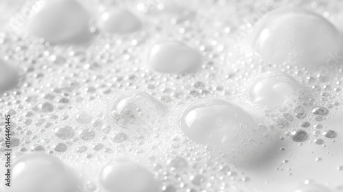 © Seyyar, Fototapeta premium Close up view of delicate translucent bubbles forming on a smooth light surface showcasing texture and reflections in minimalistic design