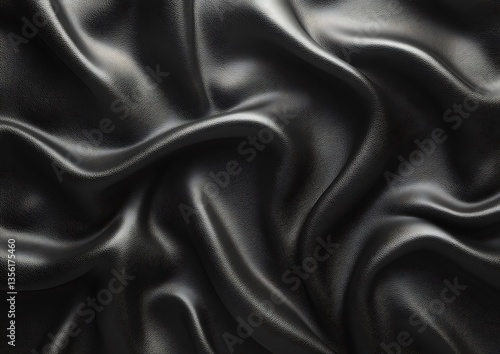 © kera, Obraz premium Close up view of flowing black shiny leather fabric