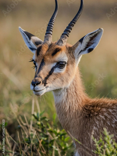 © claudunia, Obraz premium Close-up view of Gazelle cub in its natural environment with a blurred background
