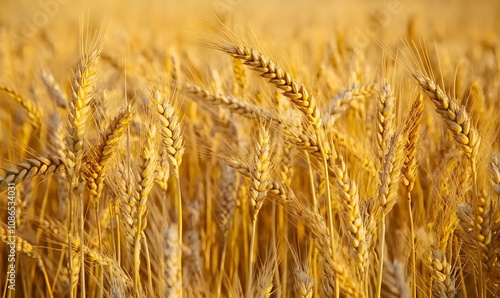 Fototapeta premium Close up view of golden wheat stalks in a field, Generative AI