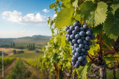 © TheWaterMeloonProjec, Fototapeta premium Close-up view of grapes growing on a vine in a rural vineyard